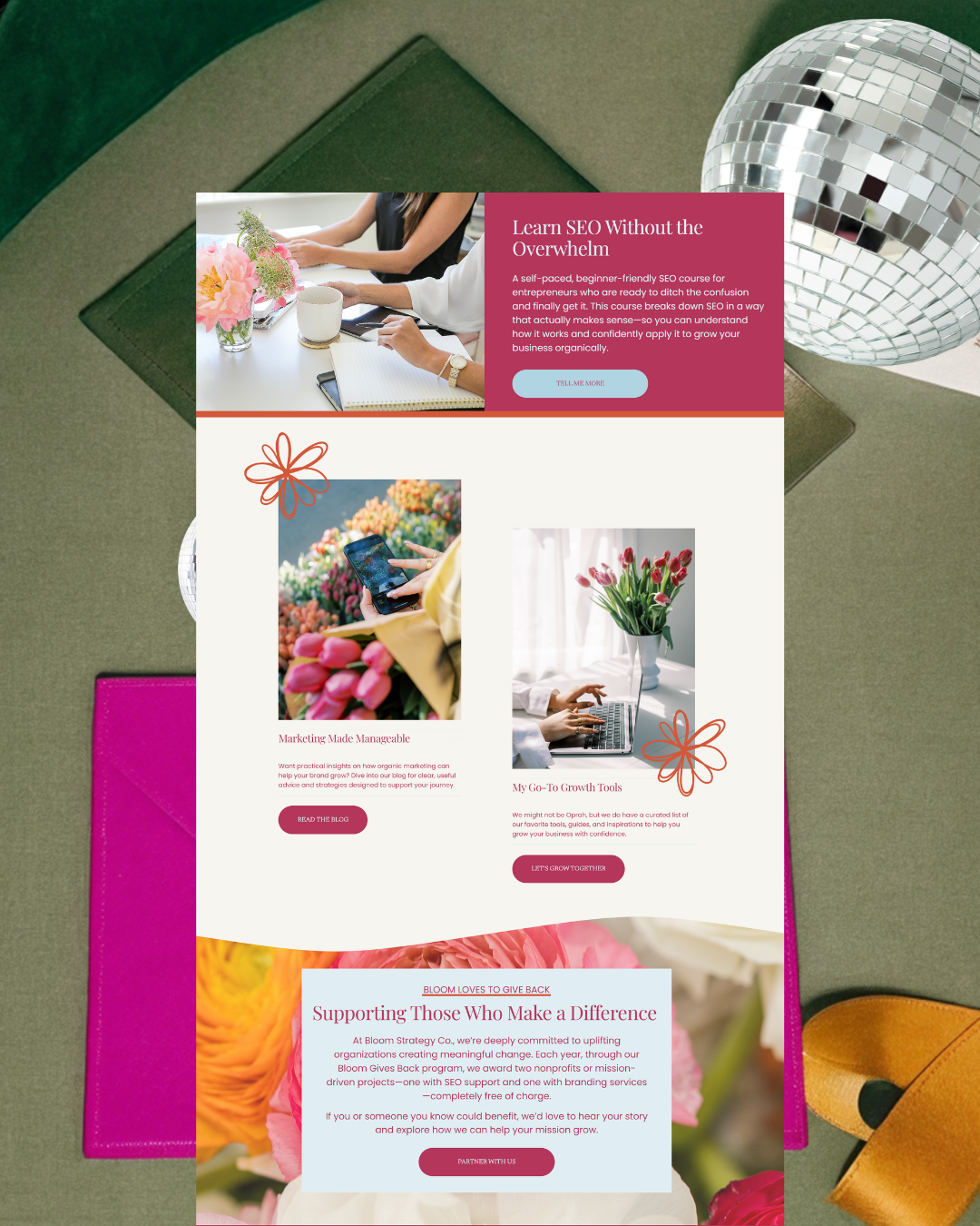 Are you ready to stop playing small? If you’re tired of DIY-ing, outgrowing your current site, or needing cohesive branding, we’ll create a polished, strategic, stress-free website —complete with a light branding add-on if you need it. Each site is thoughtfully designed to reflect your mission, support your message, and serve the people you’re called to reach—without the overwhelm. We’ll help you step into the next season with confidence.