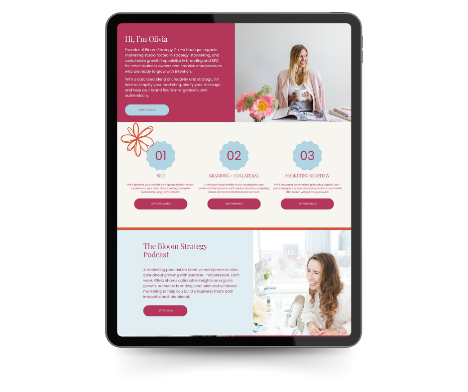 Clean, strategic layouts tailored for ministry websites, personal brands, and creative entrepreneurs.